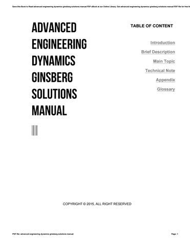 Read Advanced Engineering Dynamics Ginsberg Solutions Manual Reader